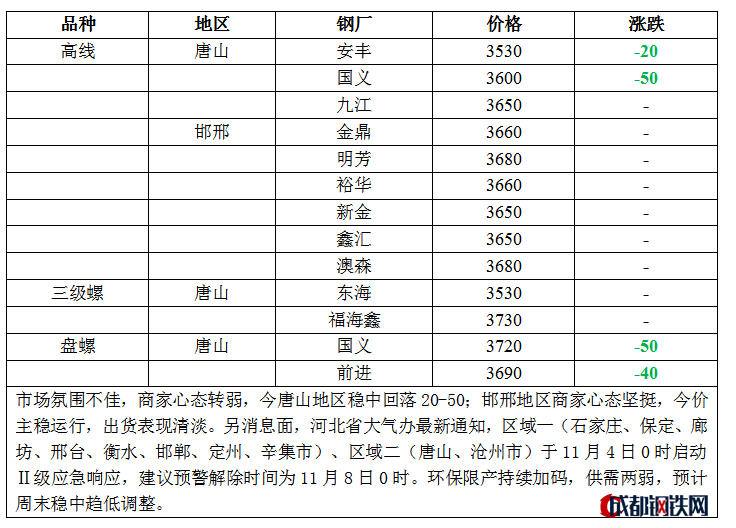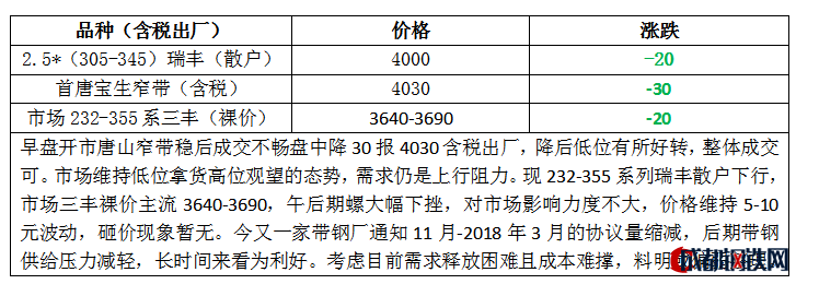 3日唐山瑞豐出廠(chǎng)降20:880-850/800-770報(bào)4040,585-550/535-495報(bào)4020,345-335、285/320-315報(bào)4000,含稅