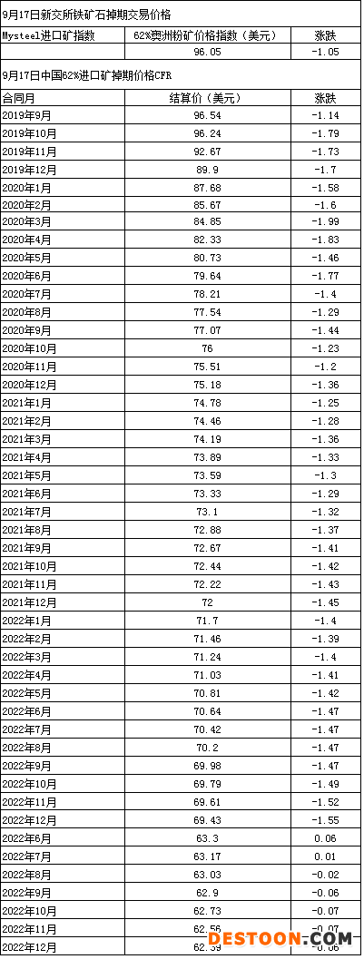 9月16日新交所鐵礦石掉期交易價(jià)格