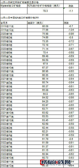 2019年11月11日新交所鐵礦石掉期交易價格